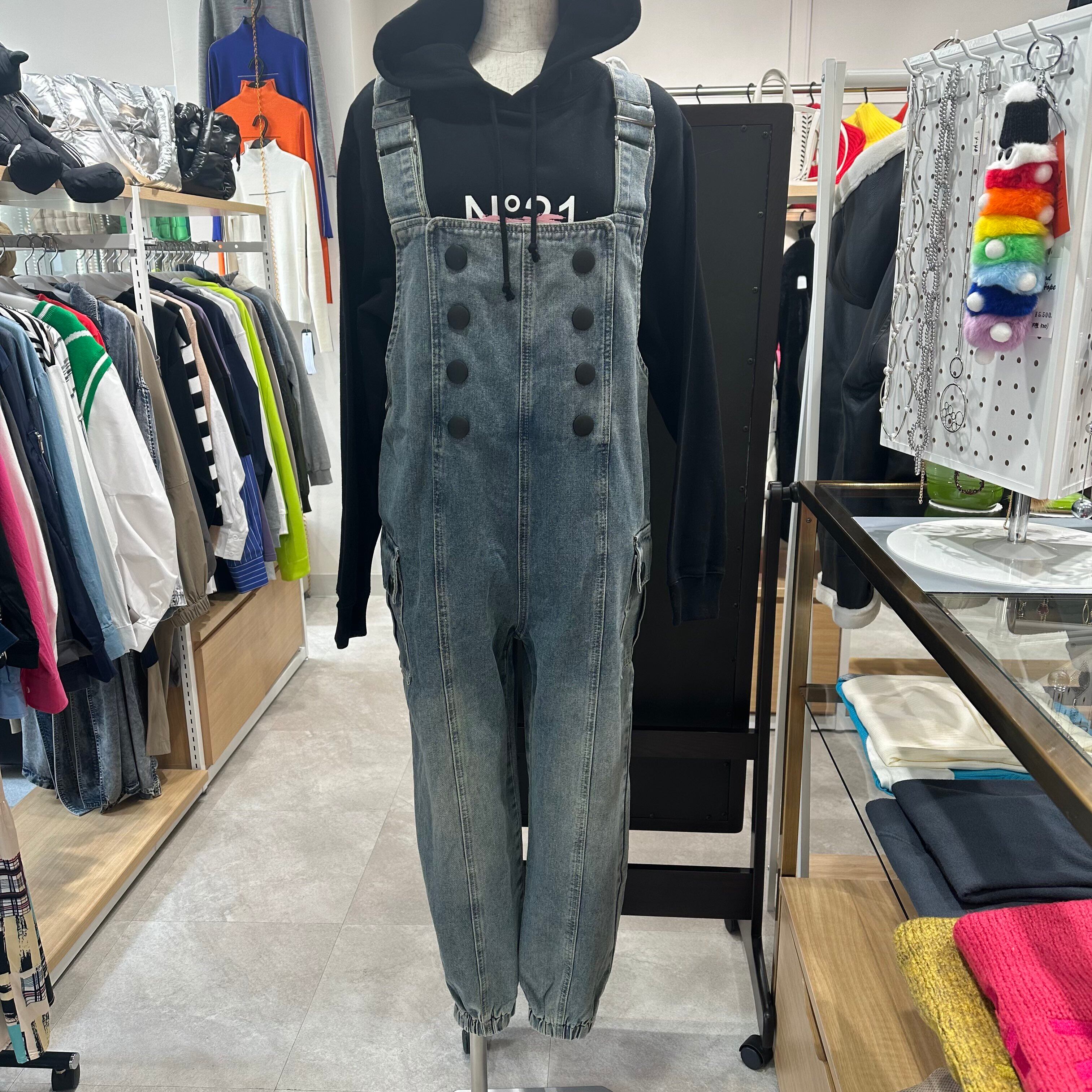 可愛らしいデザインのダブルボタンデニムサロペットが登場しました!ダブルボタンがアクセントになり、おしゃれな印象を与えます。さらに、裾にゴムが入っているジョガーパンツ仕様なので、履き心地も抜群です。カジュアルなスタイリングにはもちろん、トップスを変えてキャッチ―なコーディネートも楽しめます。デートやお出かけ、イベントなど、様々なシーンで活躍すること間違いなしです。