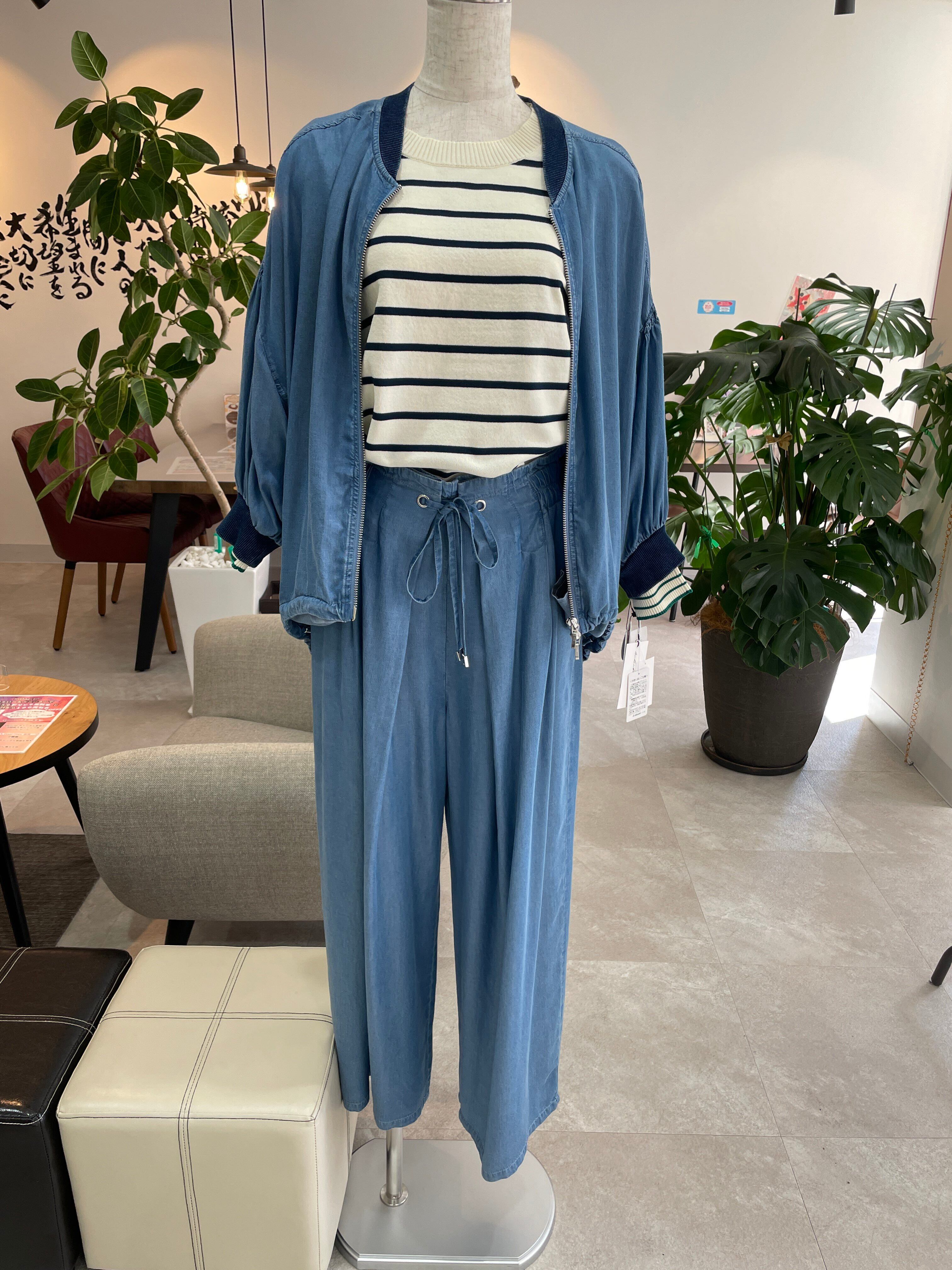 QTUME テンセルデニムタックワイドパンツ
